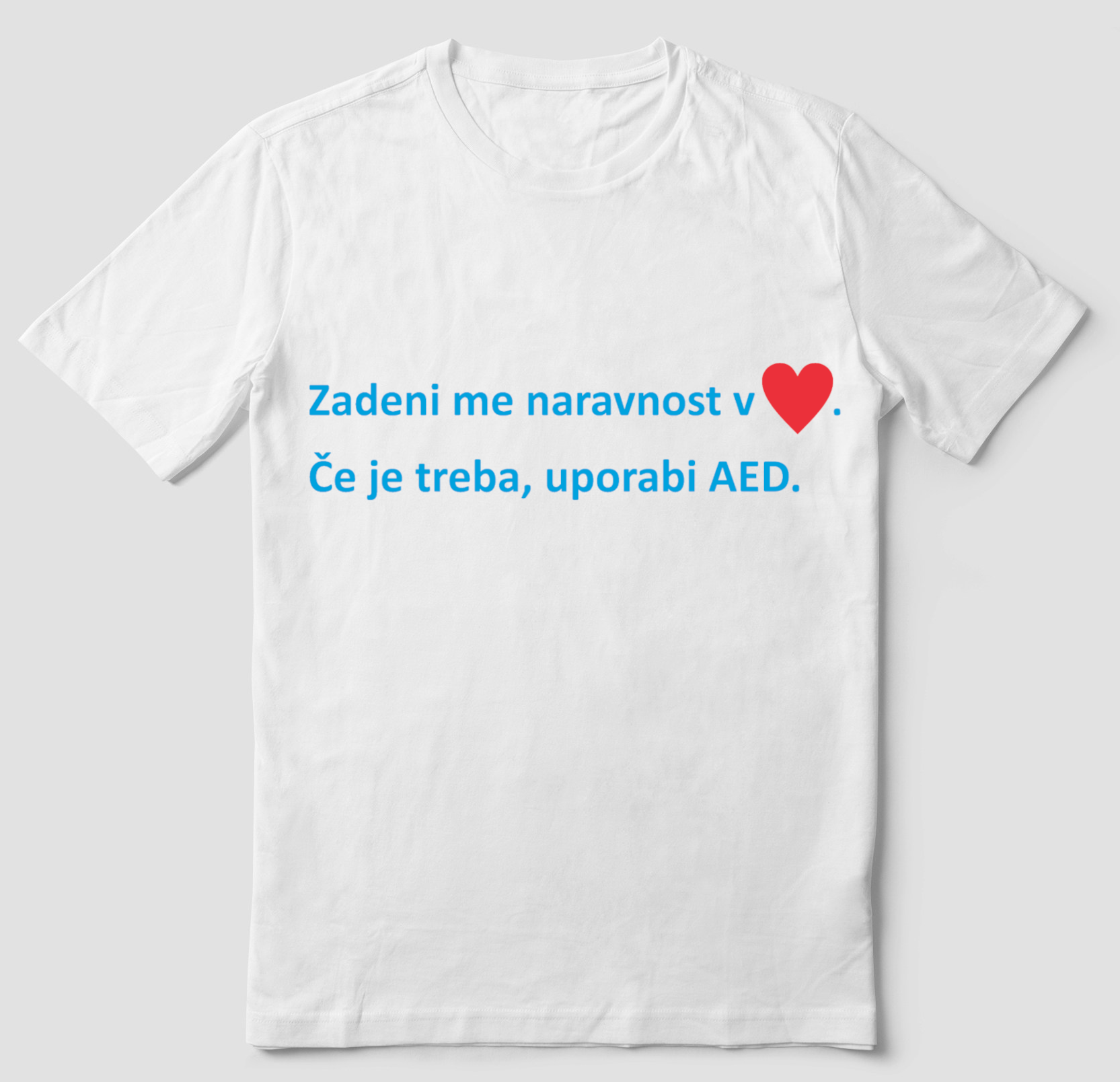 Ob nakupu vsakega defibrilatorja, vam podarimo 1 majčko z napisom: "Zadeni me naravnost v srce, če je treba, uporabi AED."