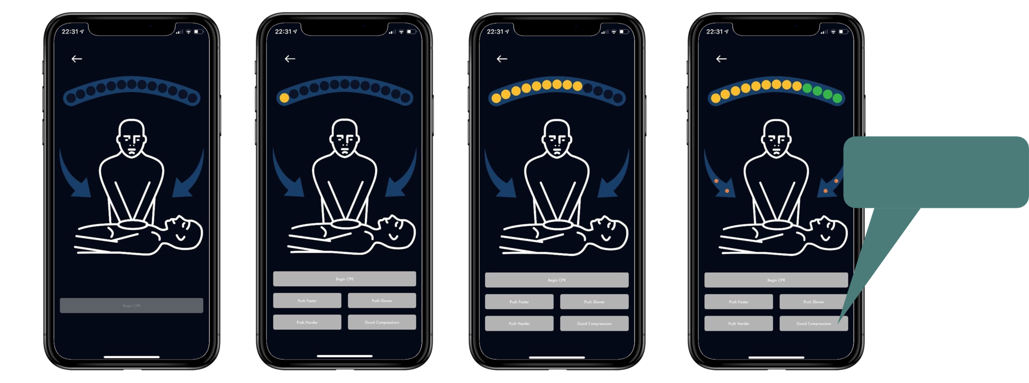 Pri SAM 500P: inštruktorji lahko prek aplikacije nudijo povratne informacije o učinkovitosti izvajanja KPO tečajnikov tako,